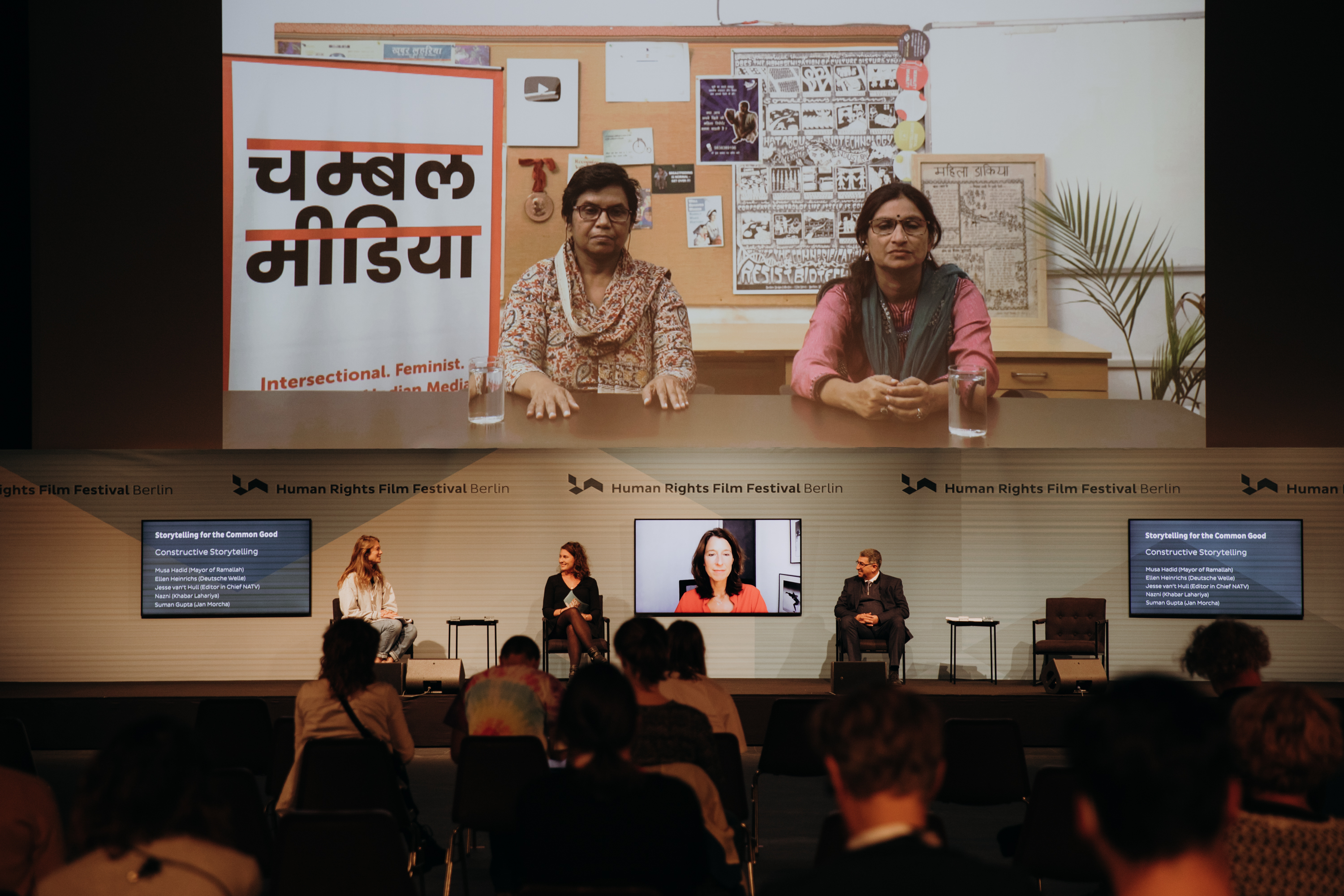 WATCH FULL VIDEOAt the Human Rights Film Festival of Berlin (Oct, 2021), in the backdrop of the Writing With Fire’s screening, the filmmakers suggested to the Festival Director that the festival conference be curated between their team in Berlin with the Khabar Lahariya team in Uttar Pradesh. A unique partnership was envisioned and Khabar Lahariya was invited not just as panellists but as partners on a commissioned opportunity as co-producers of the 3-day conference on 'The Power of Storytelling'.